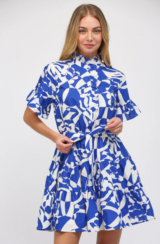 Women’s Blue Ruffle Waist Tie Mini Dress – 100% Cotton Summer Style