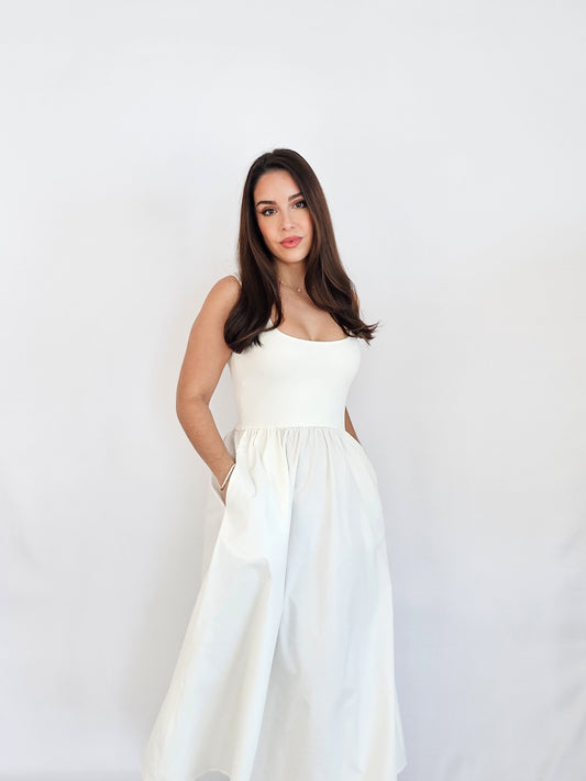 Sweater Knit Sleeveless Midi Dress – Neutral Ribbed Knit for Day to Night Style