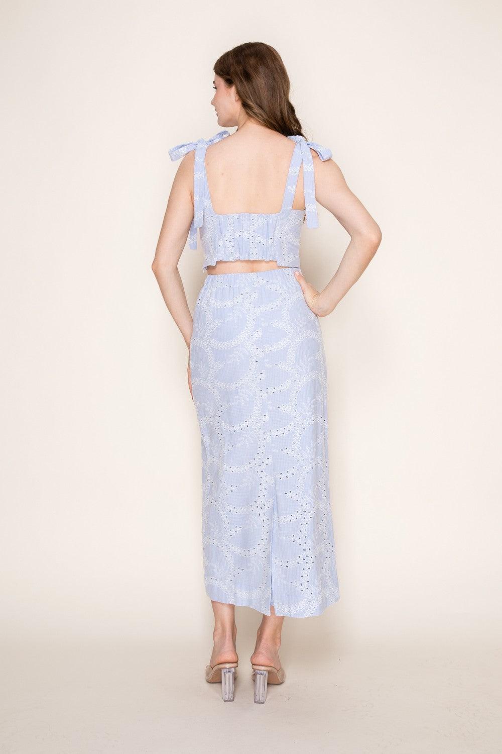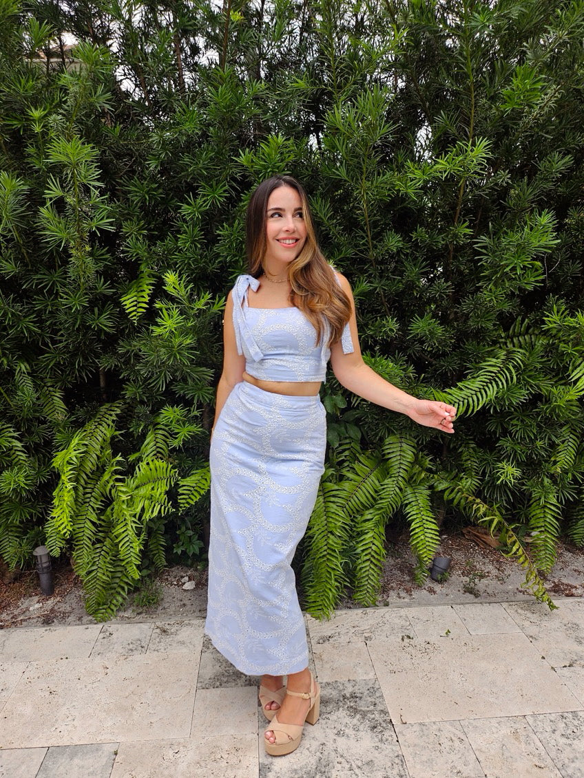 Celeste Set– Two-Piece Crop Top & Midi Skirt in Powder Blue
