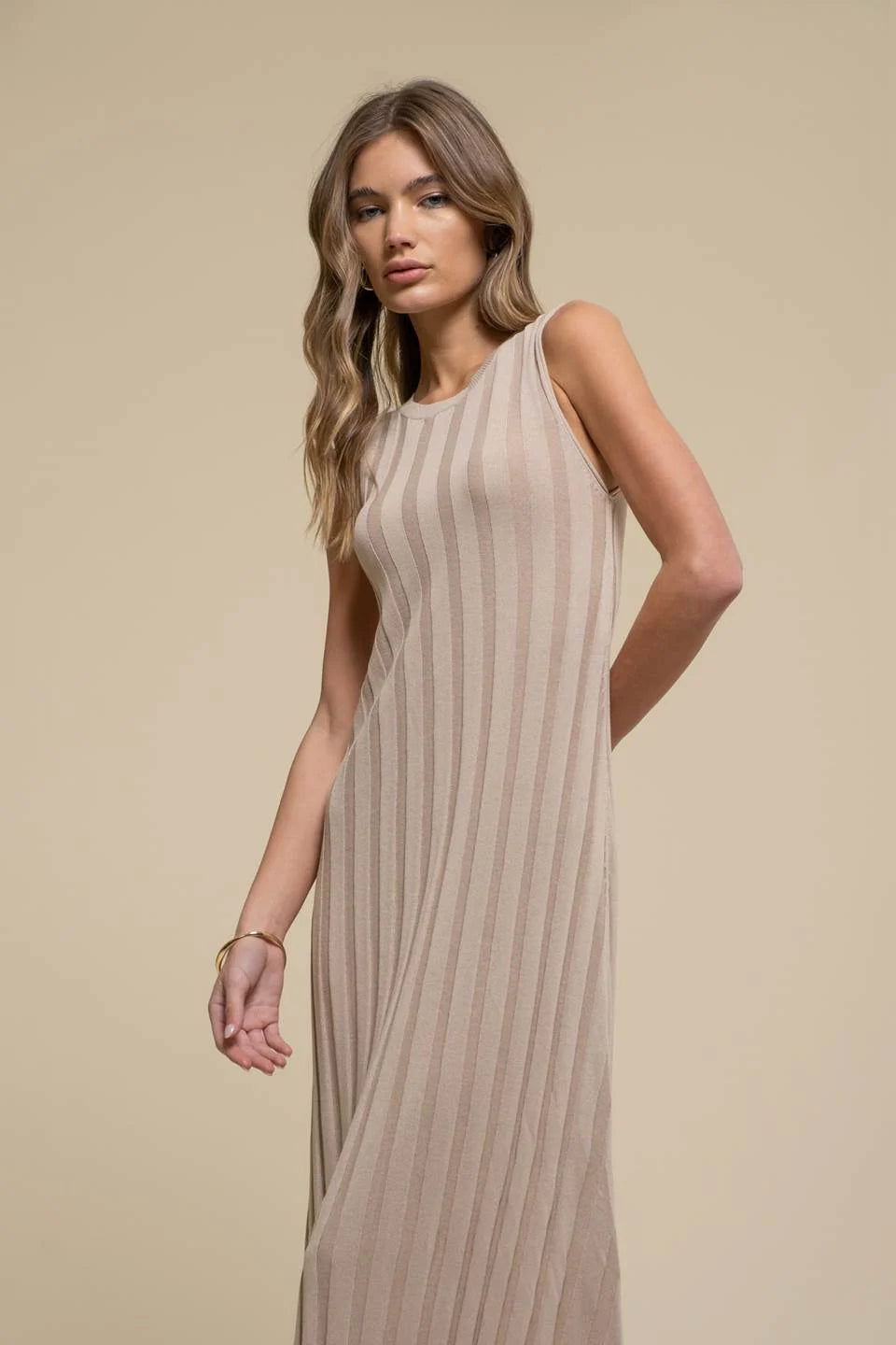 Sweater Knit Sleeveless Midi Dress – Neutral Ribbed Knit for Day to Night Style
